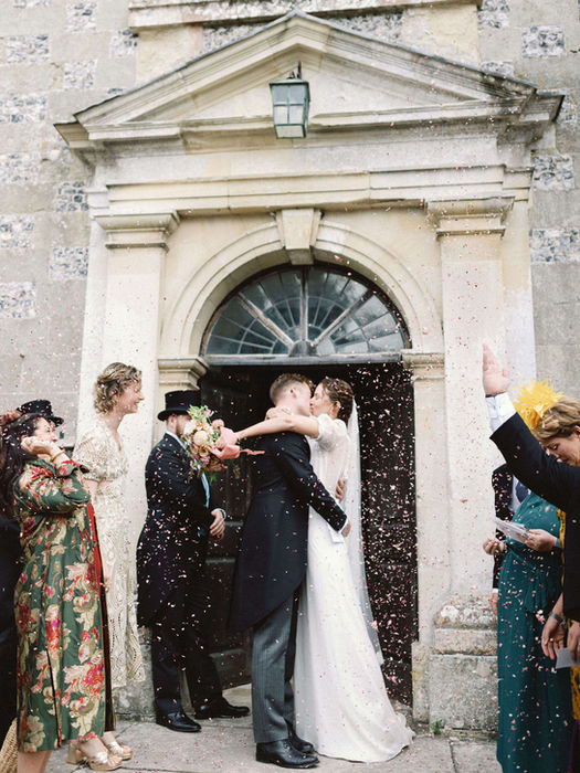PHOTOGRAPHER Imogen Xiana VENUE St Giles House FLOWERS Vervain DRESS Laure de Sagazan from The Mews SHOES Chanel PARTY DRESS Annies Ibiza SHOES Chanel GROOM Favour Brook HAIR Charlotte Robb CATERING Bead & Flowers ENTERTAINMENT The Old Malt House Jazz Band CAKE Ahh Toots